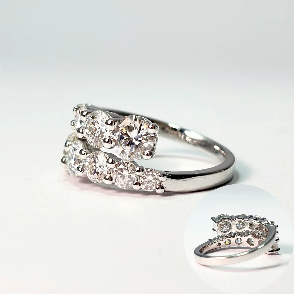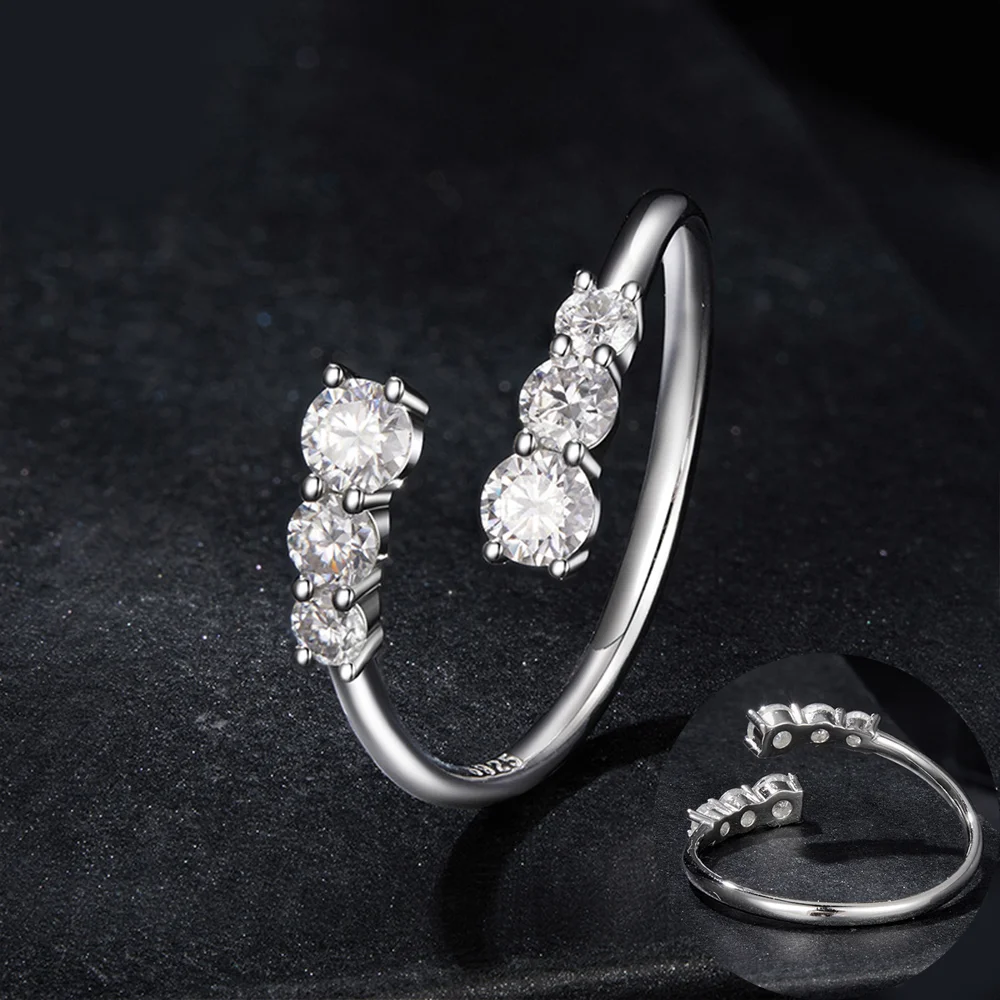 COSYA Full Moissanite Ring For Women S925 Silver D VVS1 Round Lab Diamond Adjustable Open Ring Wedding Fine Jewelry