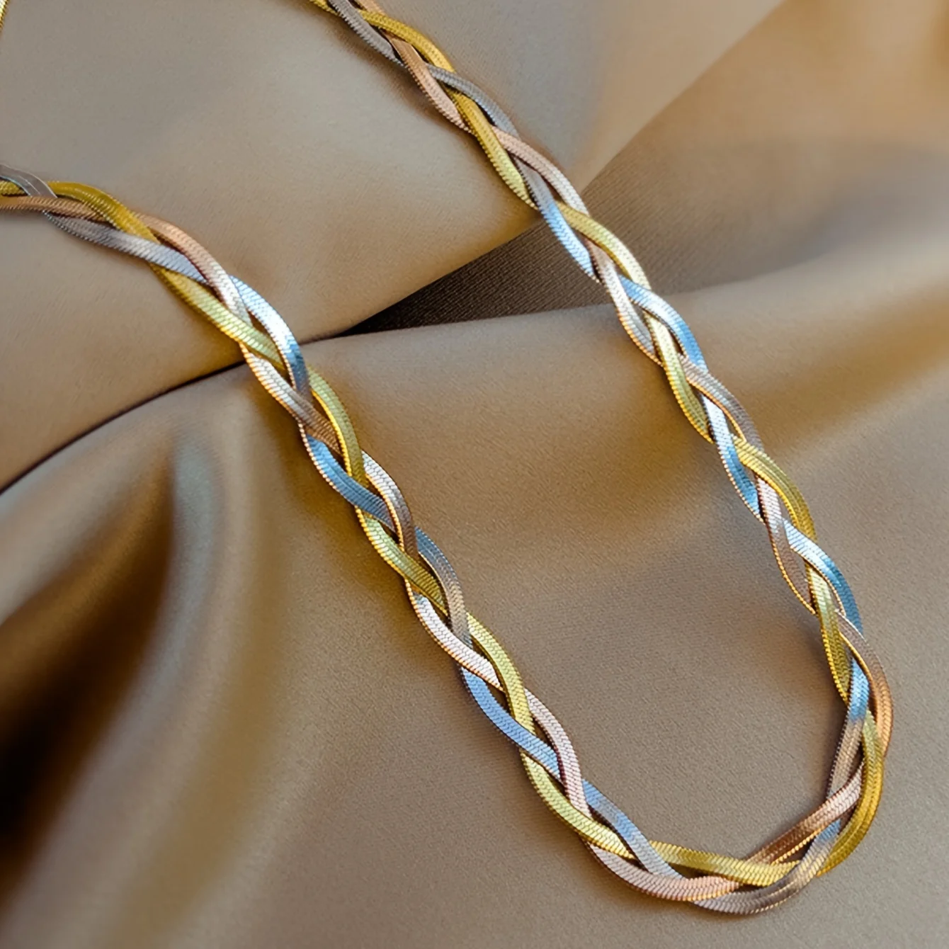 Ensemble Collier et Bracelet Plat en Acier Inoxydable â Maille Serpent Trois Couleurs | Bijoux Tendance Femme & Homme