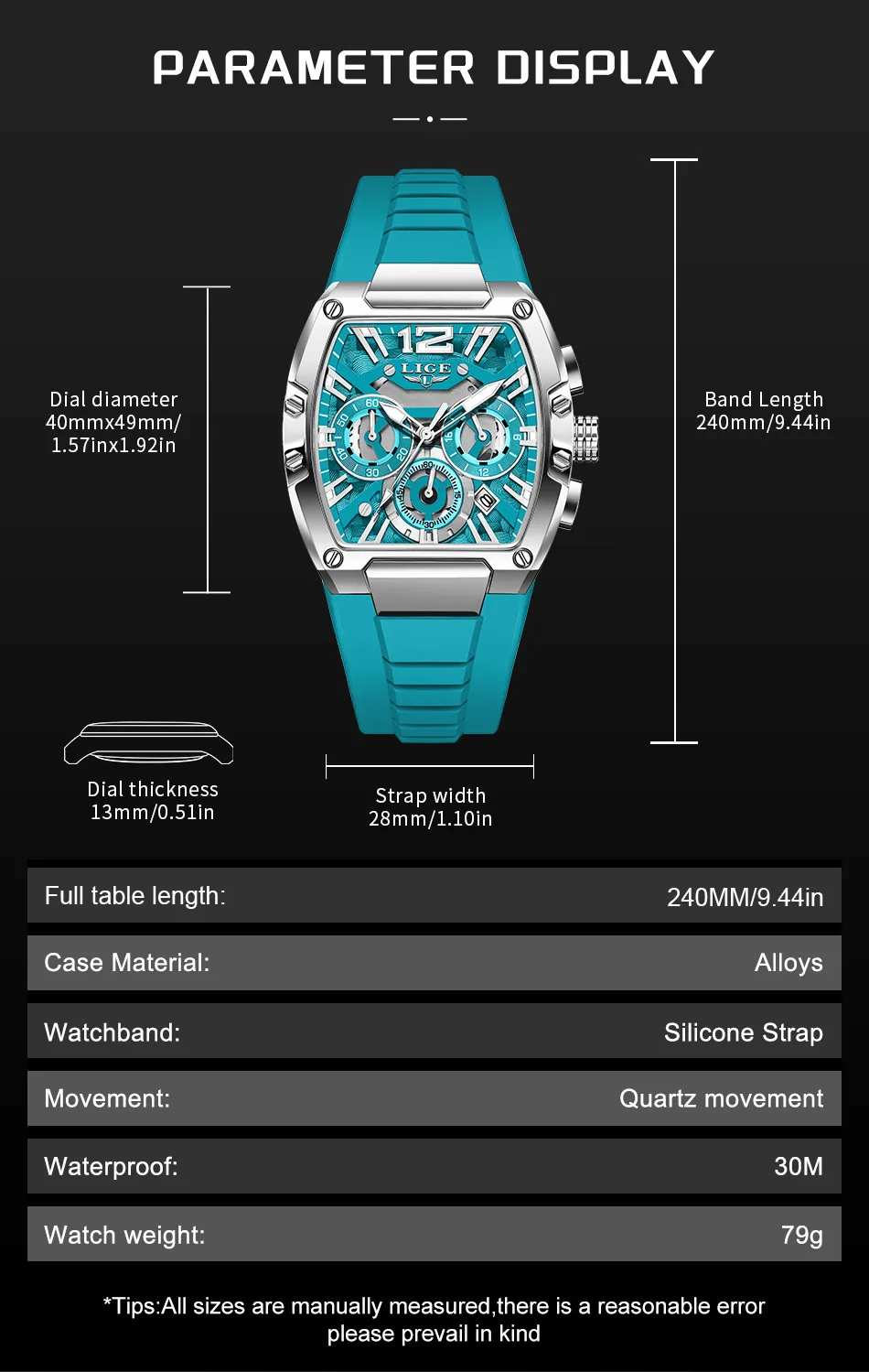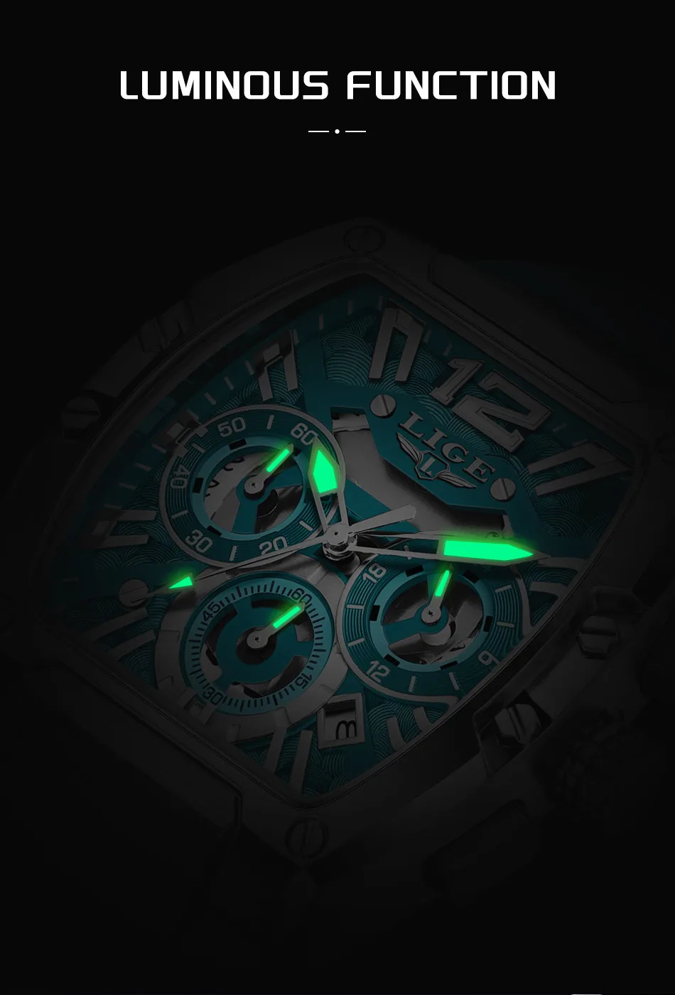 Montre Homme “LIGE Chrono Sport” — Design Carré, Chronographe Lumineux & Style Élégance Urbaine
