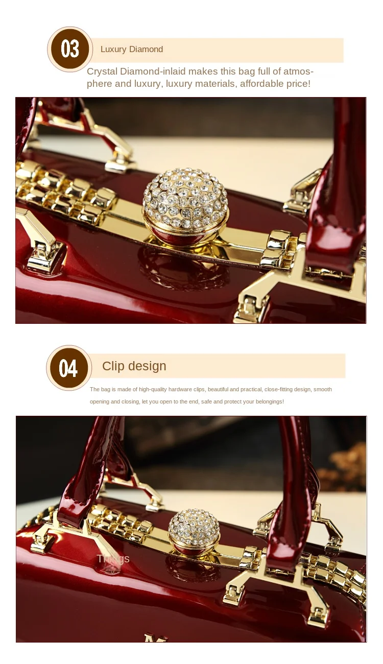 Large Capacity Leather Women Handbags 2023 New Luxury Fashion Bridal Wedding Bag Portable Mom Shoulder Messenger Bags Diamonds